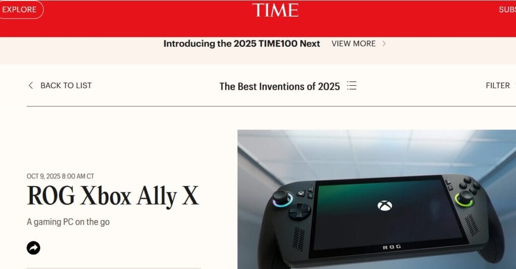 Antes de su lanzamiento oficial el 16 de octubre, la consola portátil ROG Xbox Ally X ya figura entre los inventos más destacados del año según la revista TIME.
