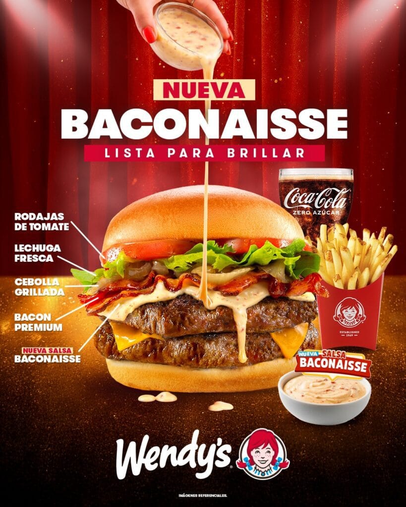 Wendy’s presentó oficialmente Baconaisse, una nueva hamburguesa pensada para quienes disfrutan del bacon en todas sus formas. El gran protagonista de esta propuesta es su innovadora salsa Baconaisse, una creación desarrollada por la marca que incorpora trozos reales de tocino de alta calidad, logrando una textura y un sabor distintivo que no se encuentra en otras salsas del mercado.