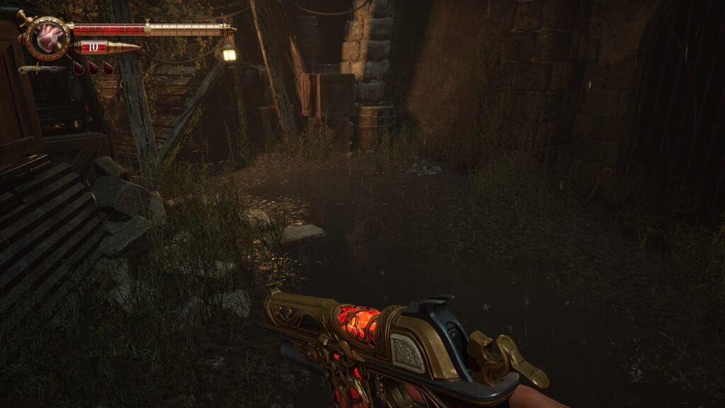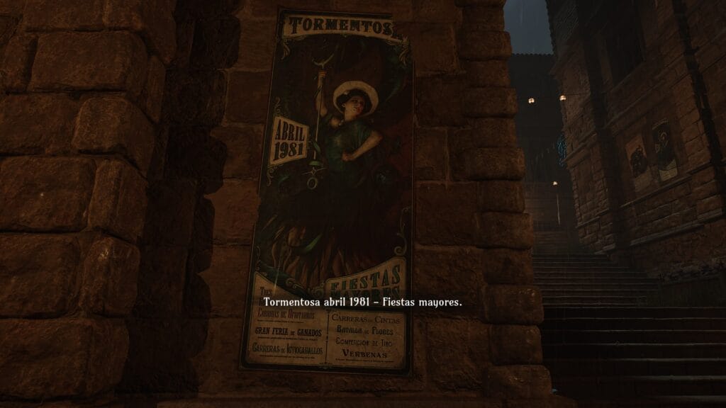 Lo primero que notas al llegar es que la ambientación está muy bien lograda y en general, su premisa junto al gameplay, te mete de lleno en un escenario lleno de catedrales gigantescas y altares que te hacen sentir todo el tiempo esa mezcla entre lo sagrado y lo corrupto. Una Tormentosa que no está tan vacía como parece al principio, pero en lugar de personas normales, te vas a cruzar con marionetas agresivas y unas criaturas muy raras que parecen estatuas vivientes. Una de ellas y de hecho, la principal, es una llamada Dolores, la cual se presenta como una estatua gigante e inmortal que no te dejará en paz, muy al estilo de esos villanos clásicos de los juegos de terror que te pisan los talones por todo el mapa. Para sobrevivir y cumplir tu misión, vas a tener que explorar cada rincón y recolectar la sangre de las familias más importantes de la isla.