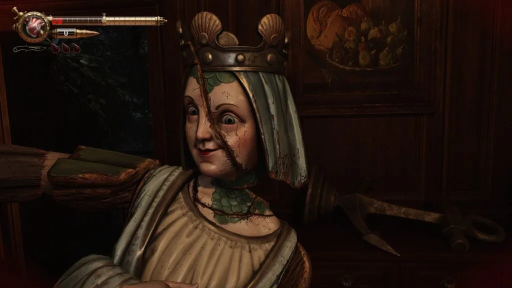 Lo primero que notas al llegar es que la ambientación está muy bien lograda y en general, su premisa junto al gameplay, te mete de lleno en un escenario lleno de catedrales gigantescas y altares que te hacen sentir todo el tiempo esa mezcla entre lo sagrado y lo corrupto. Una Tormentosa que no está tan vacía como parece al principio, pero en lugar de personas normales, te vas a cruzar con marionetas agresivas y unas criaturas muy raras que parecen estatuas vivientes. Una de ellas y de hecho, la principal, es una llamada Dolores, la cual se presenta como una estatua gigante e inmortal que no te dejará en paz, muy al estilo de esos villanos clásicos de los juegos de terror que te pisan los talones por todo el mapa. Para sobrevivir y cumplir tu misión, vas a tener que explorar cada rincón y recolectar la sangre de las familias más importantes de la isla.