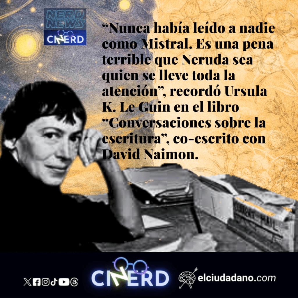 “Nunca había leído a nadie como a Mistral. No hay nadie como Mistral, es singular, y es una pena terrible que Neruda -el otro chileno que ha ganado un Nobel- sea quien se lleve toda la atención (…) Neruda es muy buen poeta, pero a mí, personalmente, Mistral tiene mucho más qué decirme”, recordó Ursula en el libro “Conversaciones sobre la escritura”, co-escrito con David Naimon.