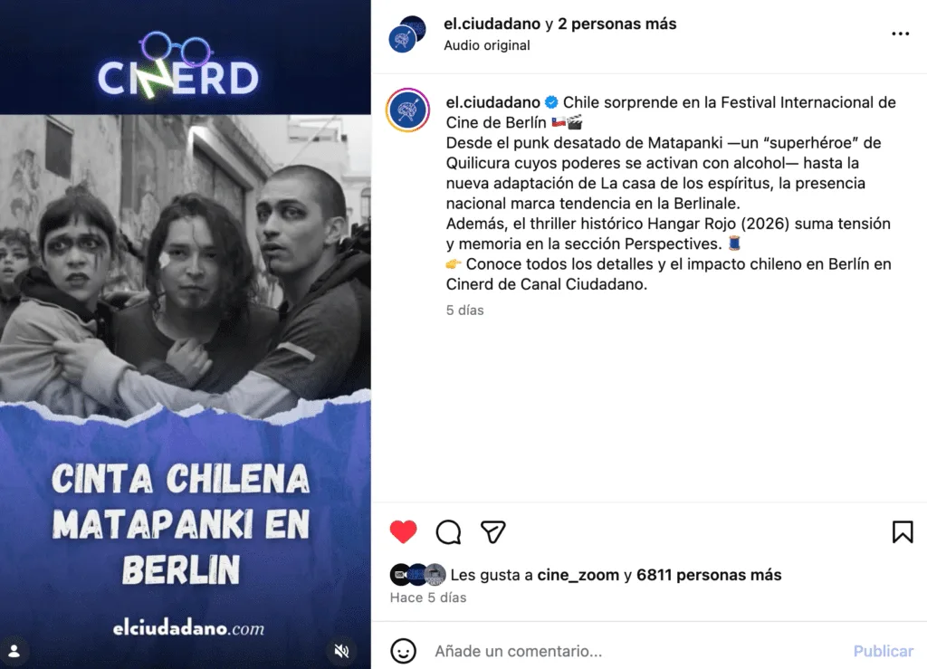 En la última edición del podcast CiNeRd de Canal Ciudadano, entrevistamos al director Diego “Mapache” Fuentes y quien ganó una Mención Especial del Jurado en la sección Generation +14 del Festival de cine de Berlín con su ópera prima “Matapanki”: película de egreso de la UDD y una explosión de nuevas energías creativas que felizmente estalló desde su estreno en el pasado festival de cine de Valdivia.