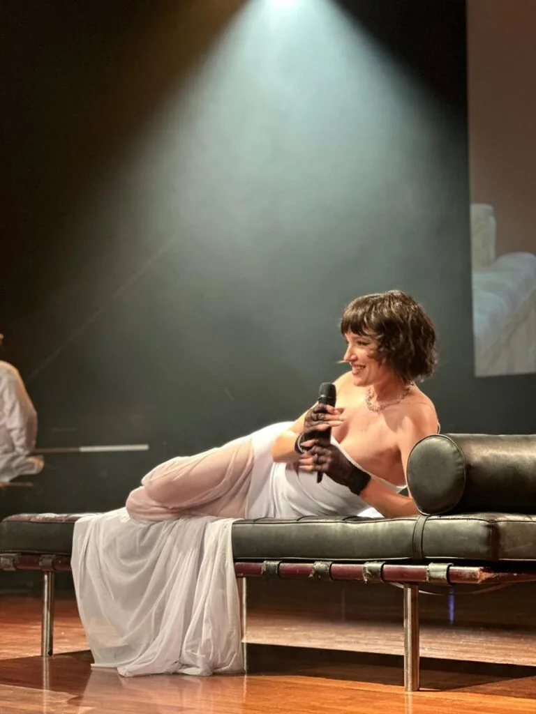 Uno de los aspectos más comentados del montaje es el monólogo que articula las canciones: textos mordaces, explícitos y brutalmente honestos, que dialogan con el stand-up comedy sin perder espesor dramático. Dindi Jane confirma que todo fue escrito por ella y trabajado actoralmente para evitar el distanciamiento teatral: “Quería algo más directo, más stand-up”.
