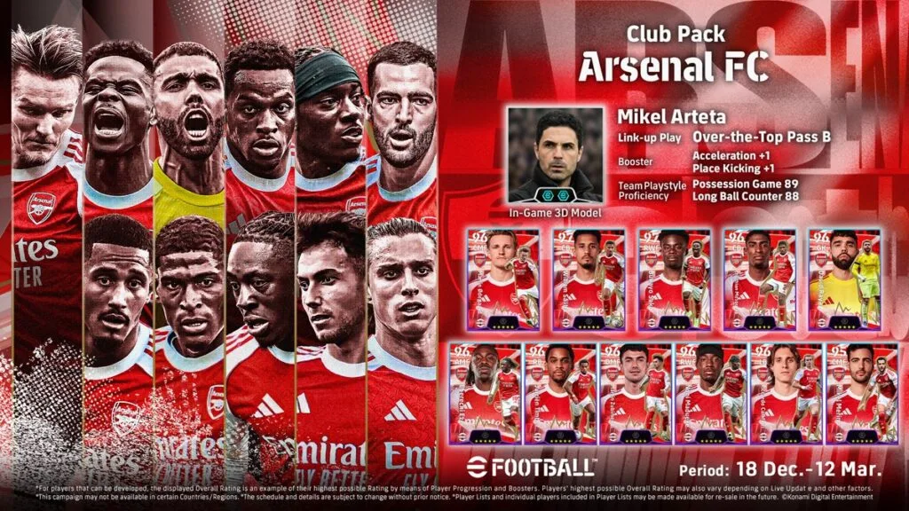 Además, ya han comenzado las eliminatorias en línea para el evento de clubes “eFootball™ Championship 2026 Arsenal FC”. Este evento determinará el representante de Arsenal FC para el Campeonato Mundial de eSports “eFootball™ Championship 2026”, que contó con 36,42 millones de participantes la temporada pasada.