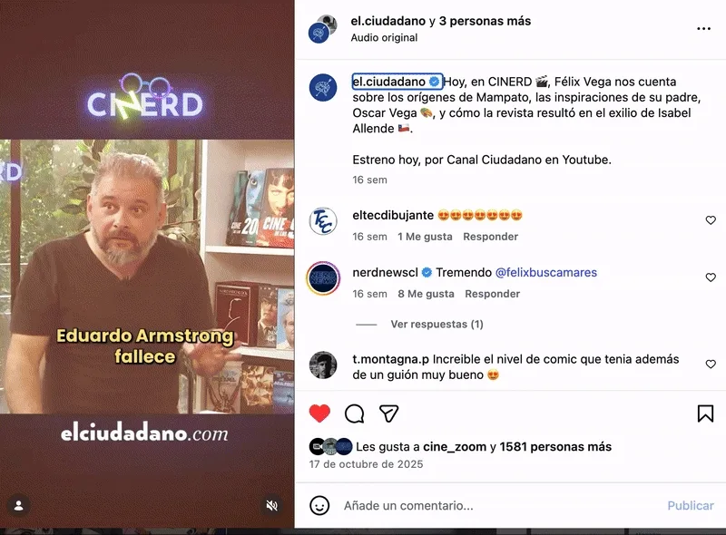 La frase no es una exageración ni una lectura retrospectiva forzada. Es una constatación histórica que reaparece en CiNeRd, el espacio de conversación sobre cine y cultura de Canal Ciudadano, durante la entrevista de Ernesto Garratt al ilustrador y autor Félix Vega. Allí, al presentar su libro El mundo de Óscar Vega, el artista revive uno de los episodios más insólitos —y reveladores— de la historia cultural chilena: la censura de una portada de Mampato que terminó convirtiéndose en un problema político para la Junta Militar.