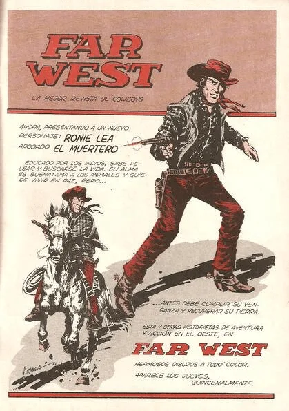Asi es, sus rastros se pueden encontrar en variadas revistas de la época y siempre con ingeniosas obras. Con humor en El Pingüino, ya más serio con aventuras de carreras de auto en Ruta 44, y también en trabajos en un género que entonces era muy popular, el western, en la revista Far West.