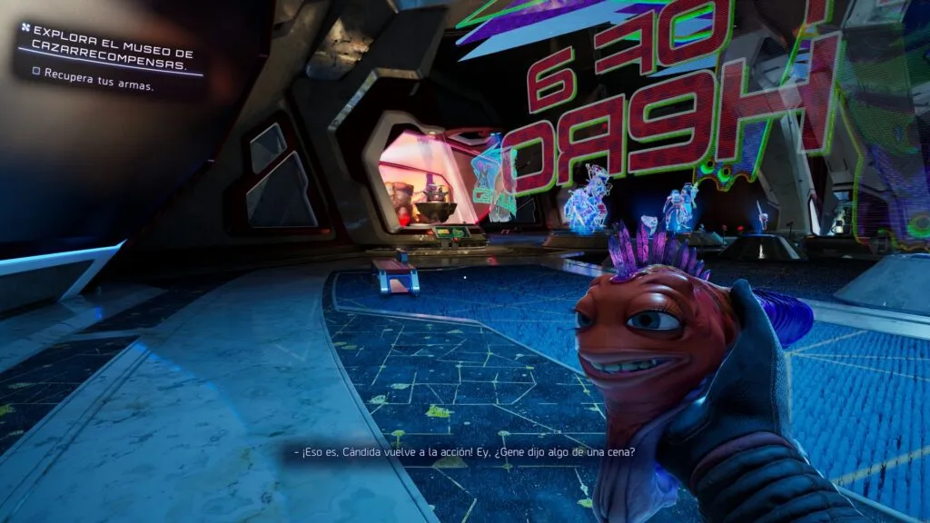 Cada planeta tiene su propia vibra, con algunos que parecen una tienda de dulces futurista, llenos de brillos y anuncios llamativos, mientras otros son más grotescos, con superficies orgánicas y alienígenas que no sabes si te quieren vender algo o comerte. Ese contraste constante evita que la aventura se sienta repetitiva, ya que siempre hay una sorpresa visual esperando, con por ejemplo, un cartel burlándose de marcas del mundo real, un NPC diciendo algo absurdo en segundo plano, o un detalle escondido que solo ves si te detienes a mirar con calma. En este aspecto, “High On Life 2” es de esos juegos que premian la curiosidad y si te gusta explorar sin prisa, vas a encontrar pequeños chistes y situaciones que no son obligatorias, pero que suman mucho al encanto general.