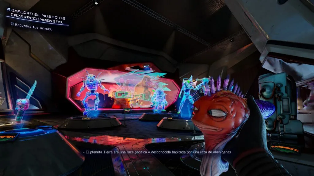 Esto ya que en la trama de “High On Life 2” hay una megacorporación llamada Rhea Pharmaceutical que tiene un plan tan macabro que parece broma de mal gusto y básicamente, quieren convencer al Congreso Galáctico de que los humanos no valen mucho y transformarnos en una especie de “recurso” para sus medicinas. Sí, lo dicen en serio dentro del juego, pensando en criar humanos como si fueran ganado para procesarlos y, en ese contexto entra Lizzie, tu hermana, que dejó de ser un personaje de relleno y se convirtió en activista a full, la cual descubre el asunto y la etiquetan de ecoterrorista.