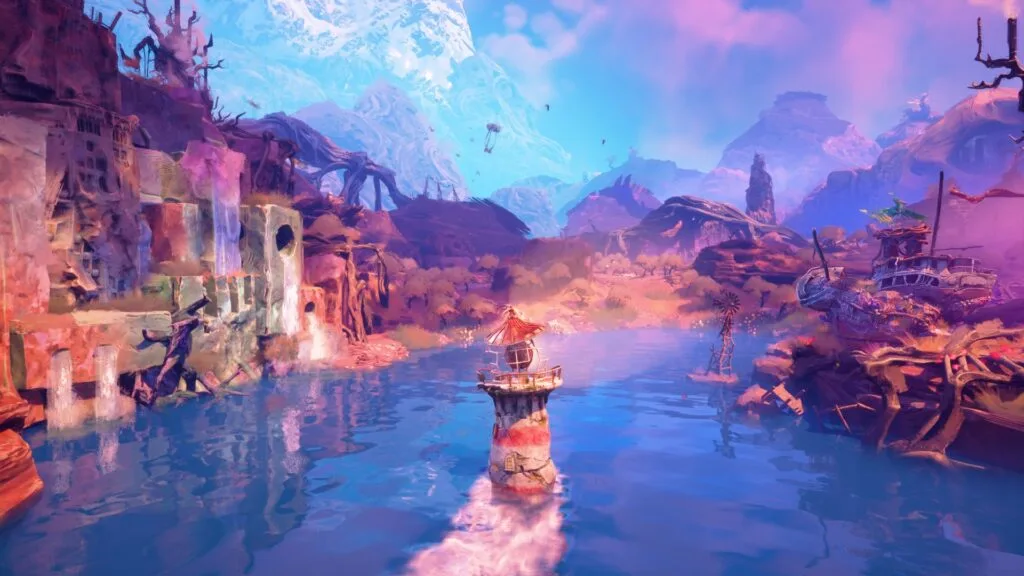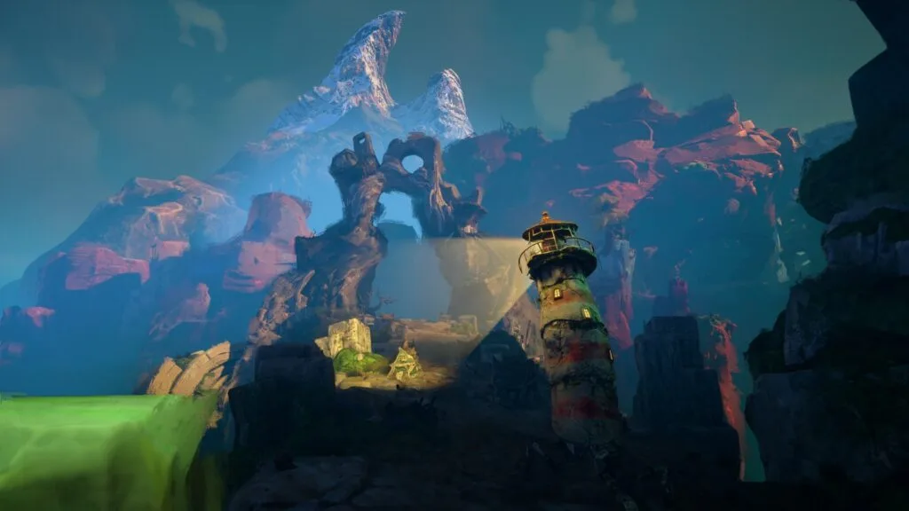 A lo largo del viaje, el faro y Twig deben colaborar para superar obstáculos y devolver la vida a los paisajes marchitos, una dinámica que define el corazón del juego.