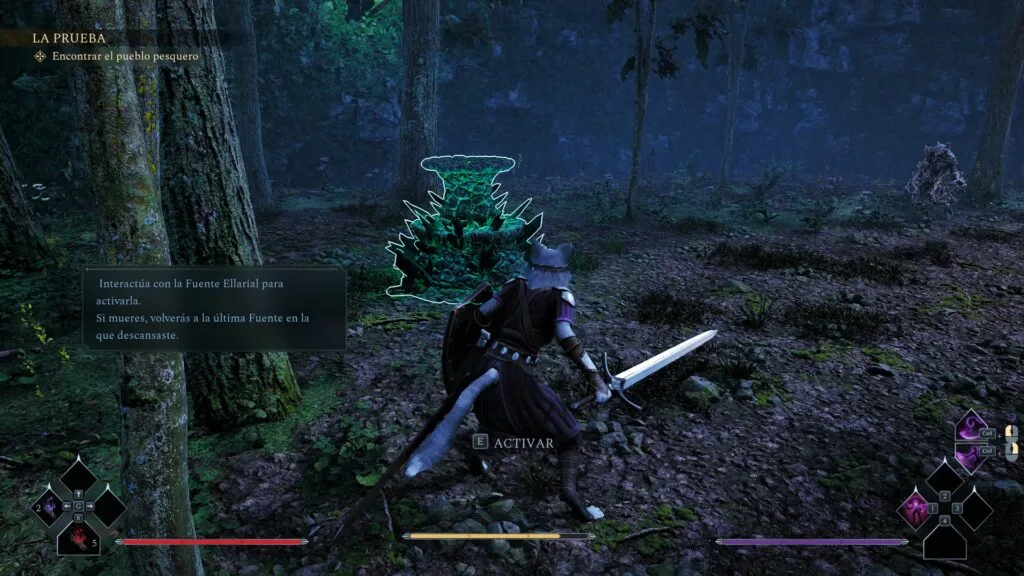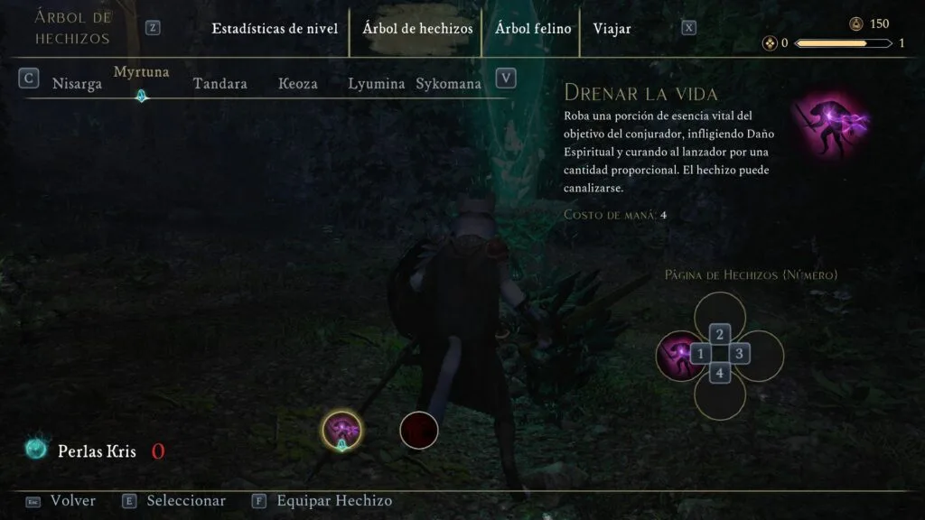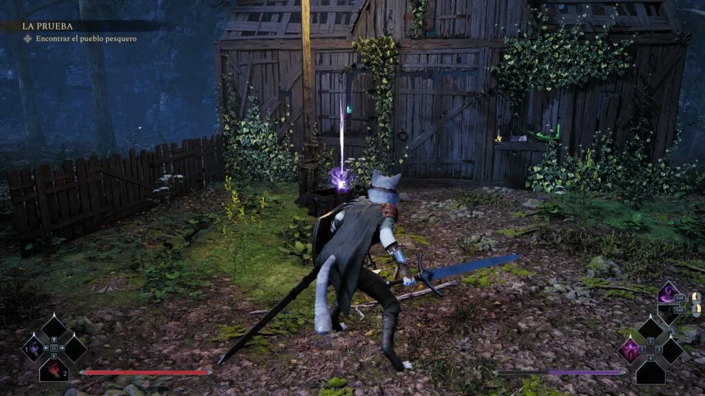 El arsenal arranca comedido con espada y escudo, garras y mandoble, inventario donde cada opción sugiere un estilo, pero la personalidad de las armas aún necesita acentuarse. Junto a esto, la progresión de “Kristala” acompaña con mejoras de herrería y árboles de habilidades divididos entre ramas mágicas y felinas, mientras la base, totalmente entendible, tiene experiencia en forma puntos a estadísticas clásicas como vitalidad, fuerza, destreza, voluntad, maldición, y nuevas técnicas y conjuros que van coloreando la construcción de personaje.