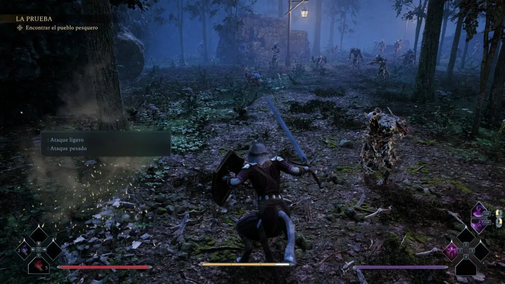 La iluminación además trabaja a favor del tono sombrío, con cristales y hogueras que puntúan el camino y construyen refugios cálidos frente a la penumbra, mientras que el sonido cumple con ambientaciones sugerentes y una banda sonora discreta que sostiene sin saturar, pero los efectos de impacto piden más pegada.
