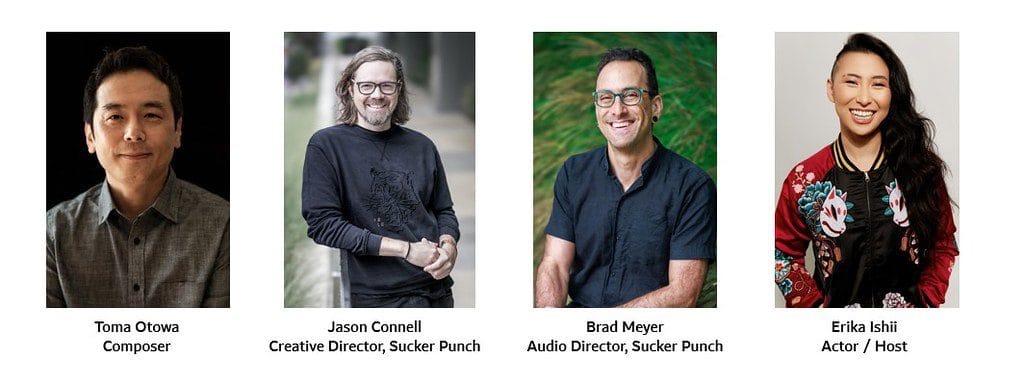 Brad Meyer: es director de audio en Sucker Punch y tiene más de 27 años de experiencia en audio de videojuegos. Ha tenido la suerte de liderar al equipo que ganó los premios BAFTA y D.I.C.E a mejor audio en 2020 por Ghost of Tsushima. Brad ahora lidera al equipo de Ghost of Yōtei. Ha dado numerosas charlas sobre audio para videojuegos en conferencias y universidades de todo el mundo.