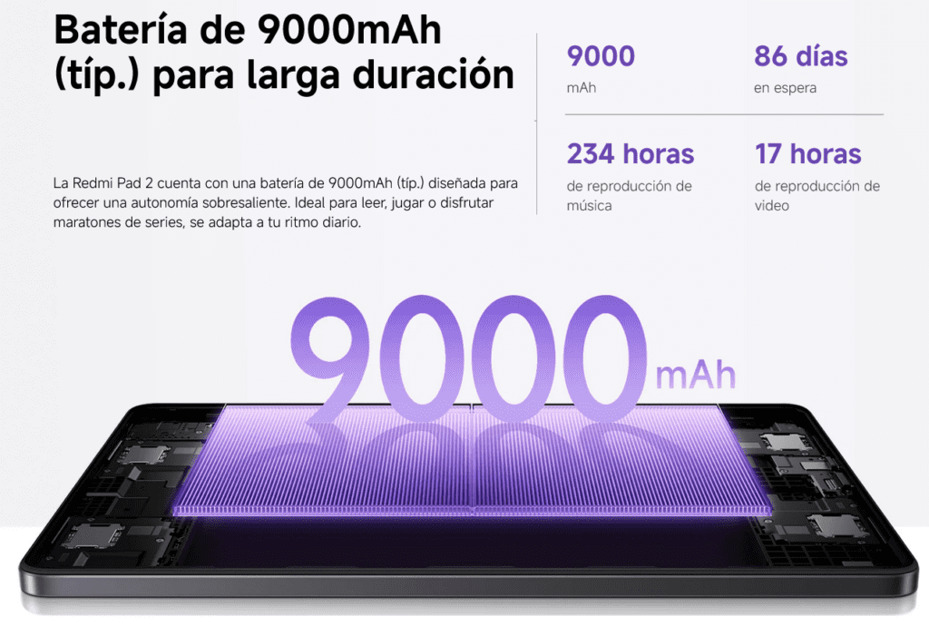 Y donde este dispositivo realmente logra distanciarse de la competencia y mostrar su verdadera fortaleza es en su impresionante gestión de la energía. Xiaomi ha logrado integrar una generosa batería de 9000 mAh en un chasis sorprendentemente delgado, convirtiendo la autonomía en su virtud más destacada. En pruebas de uso real, esta enorme capacidad se traduce en aproximadamente 15 a 17 horas de reproducción de vídeo ininterrumpido, lo que en un entorno de uso mixto permite olvidarse del enchufe durante tres o cuatro días seguidos y por ello, es la compañera ideal para viajes largos o jornadas laborales intensas, manteniendo esa gratificante sensación de que la tablet “siempre está lista” para la acción.