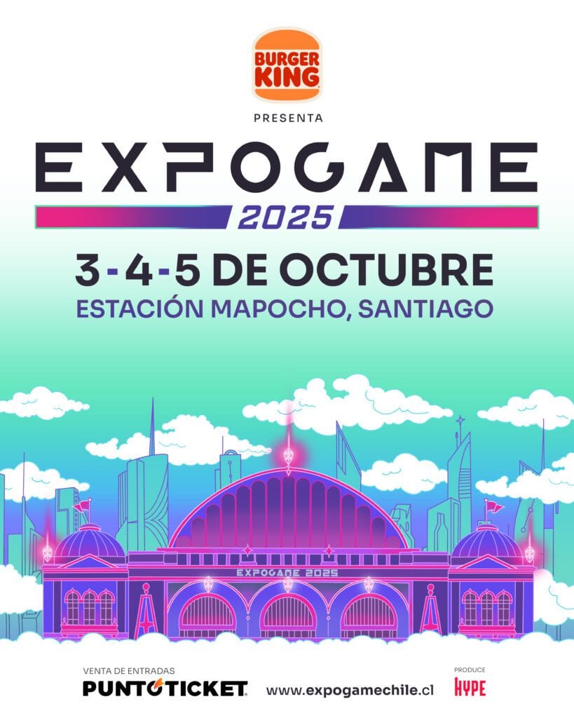 Expogame se realizará los días viernes 3, sábado 4 y domingo 5 de octubre de 2025, de 13:00 a 19:00 horas. En el centro Cultural Estación Mapocho. Las últimas entradas están disponibles en Punto Ticket