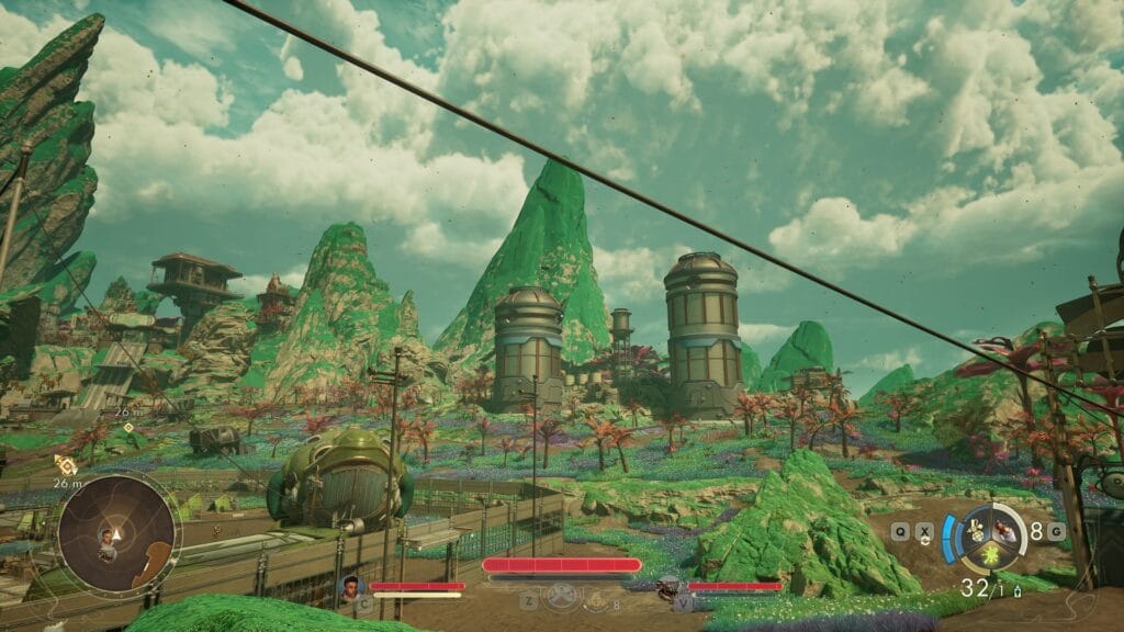 El arranque es menos inspirado pero el juego gana músculo en cuanto se abre a selvas bioluminiscentes, colonias industriales suspendidas y ciudades que se enredan en su propia arquitectura, siendo una colección de espacios calculados para provocar desvíos, ya que un resplandor en una loma, un anuncio parpadeante o un grito a lo lejos bastan para desviarte y, casi siempre, merece la pena.